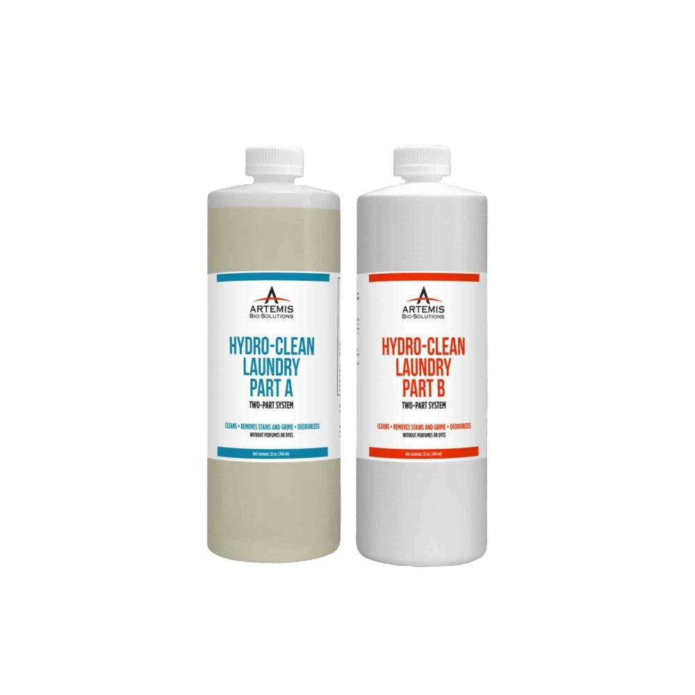 HYDRO-CLEAN LAUNDRY is a proprietary two-part formula that provides a deep clean and tough odor removal from clothing or washable fabrics.