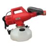 Specifications: 20” flex hose, electric motor output at 38,000 rpm that generates an airspeed of 426 ft per sec. consistent 15-25 microns (based on adjustments of output). works with oil or water or oil based, pesticides, sterilizers, odor control and disinfectants. check product label for direction on use. variable flow control, 1.25-gallon solution tank. turn off solution control knob before turning off motor to prevent splatter.